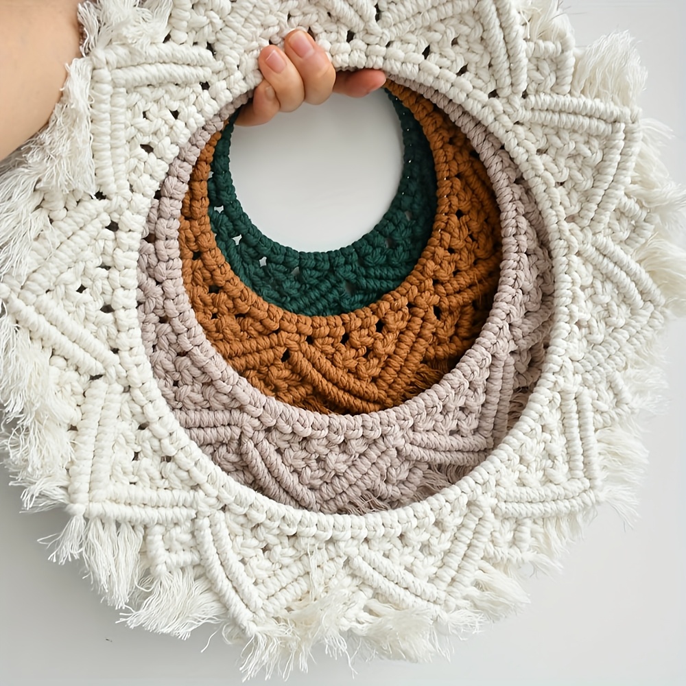 Découvrez notre magnifique tapisserie murale bohème en macramé, confectionnée à la main et ornée d'un mandala unique. Cette pièce exceptionnelle présente des motifs tissés complexes et est réalisée dans une jolie teinte brune, apportant une touche naturelle et authentique à votre intérieur. La tapisserie murale en macramé est idéale pour ajouter une note bohème chic à votre maison.