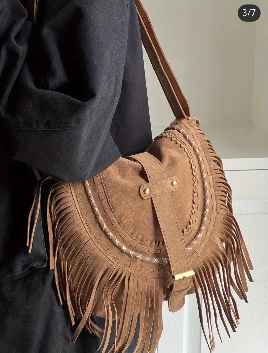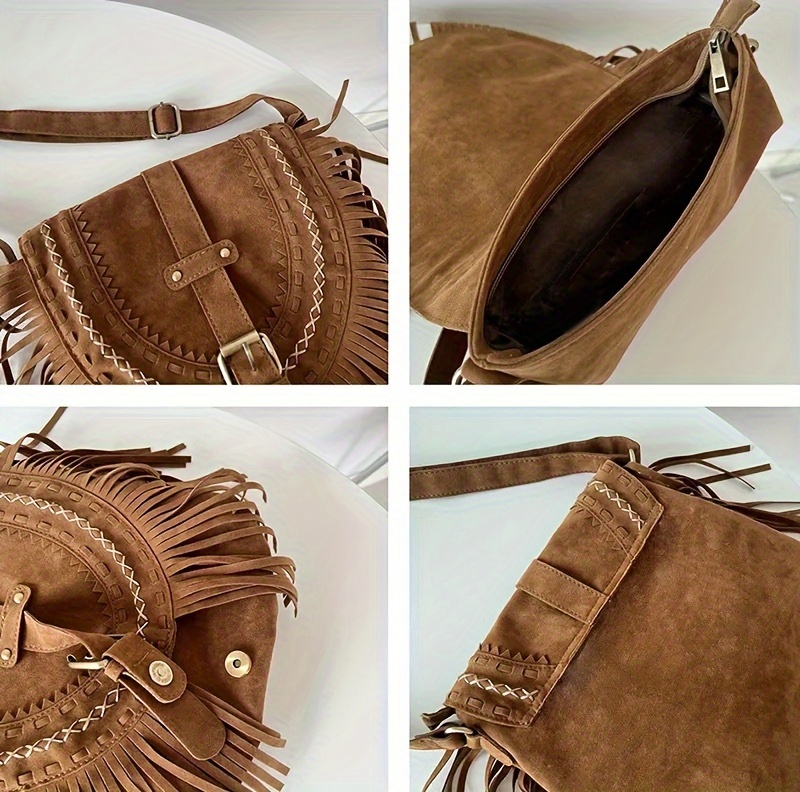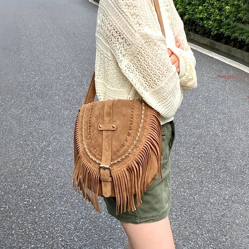 Sac bandoulière à franges style bohème.