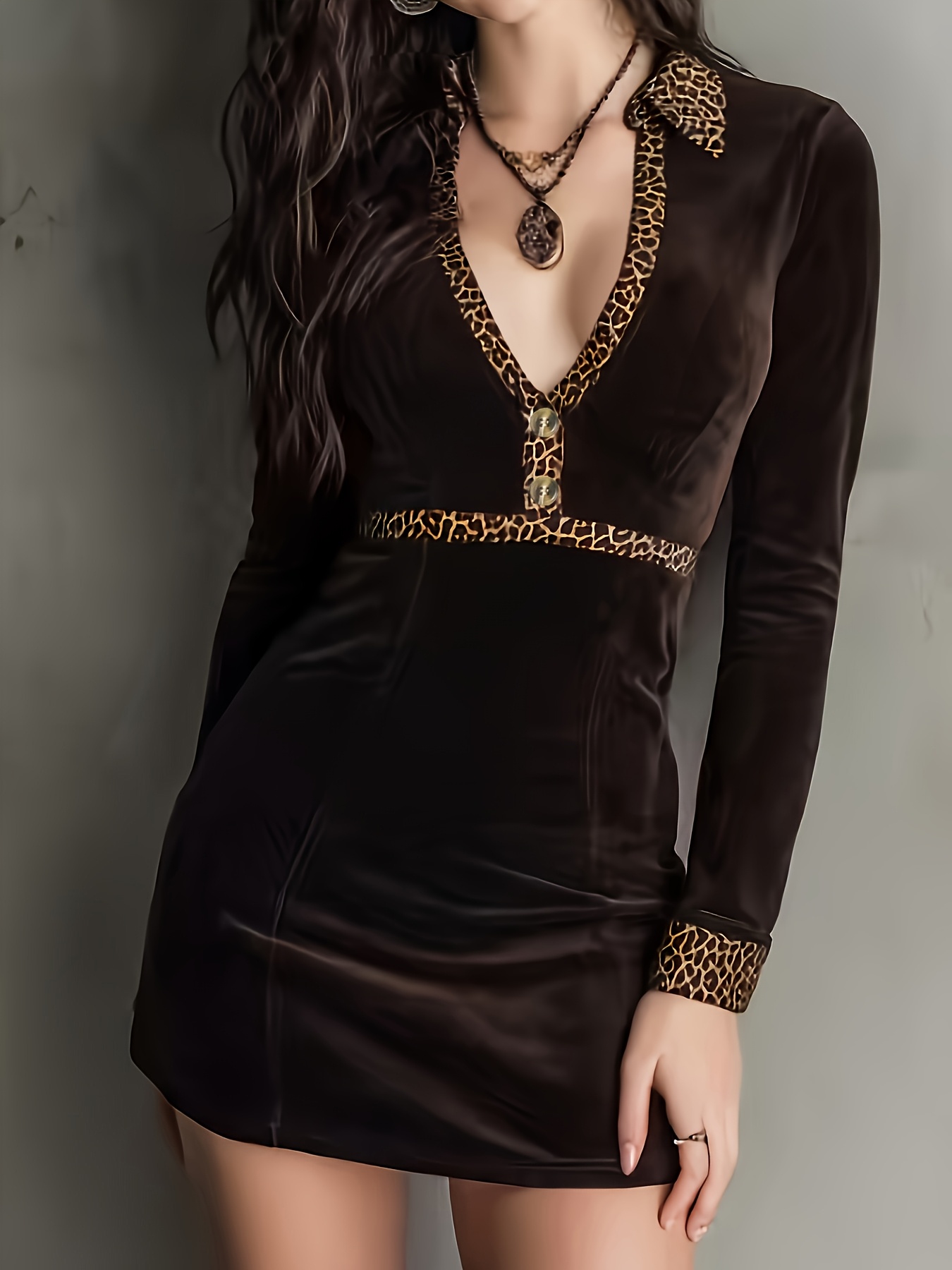 Robe moulante à manches longues léopard.