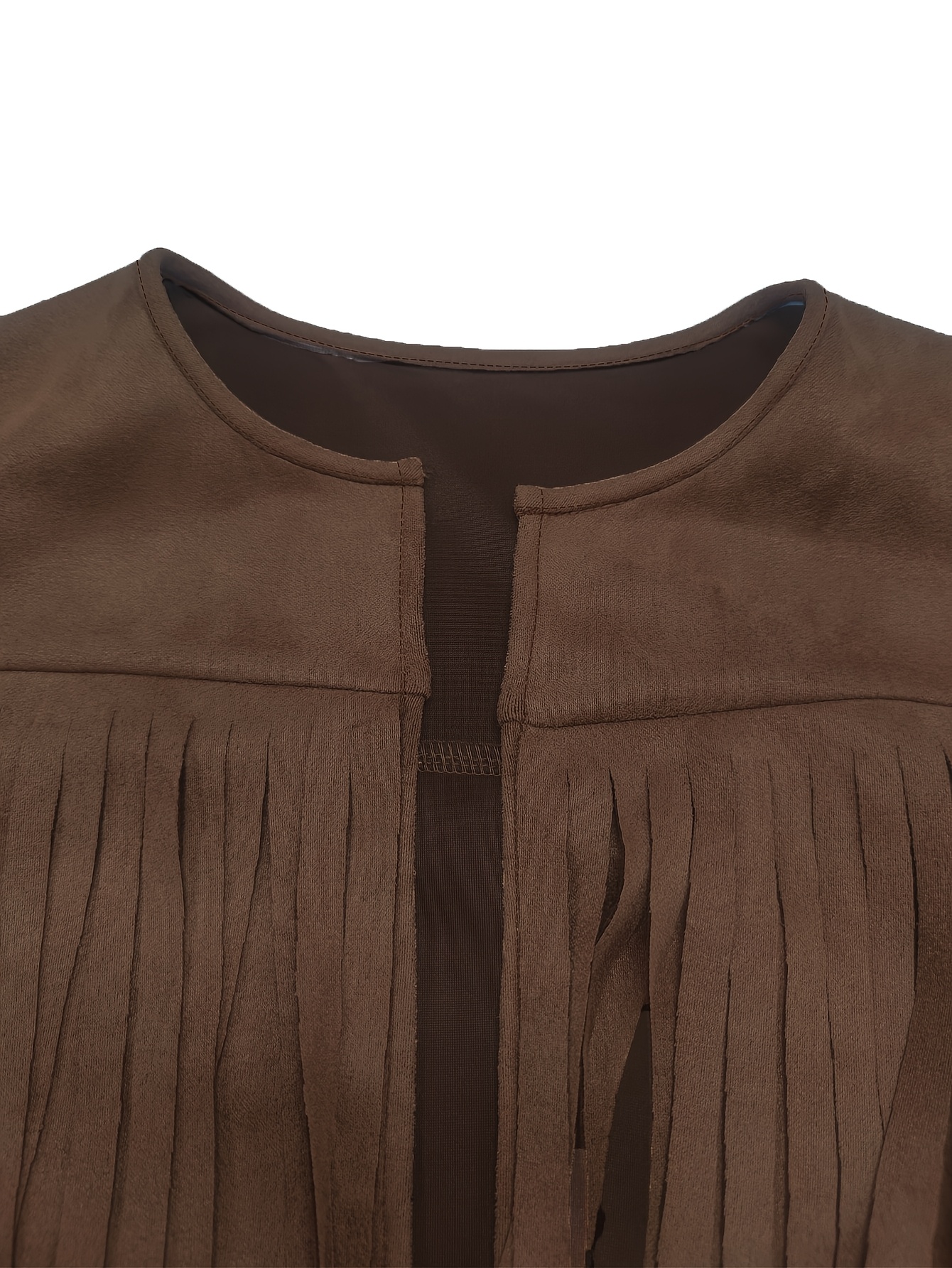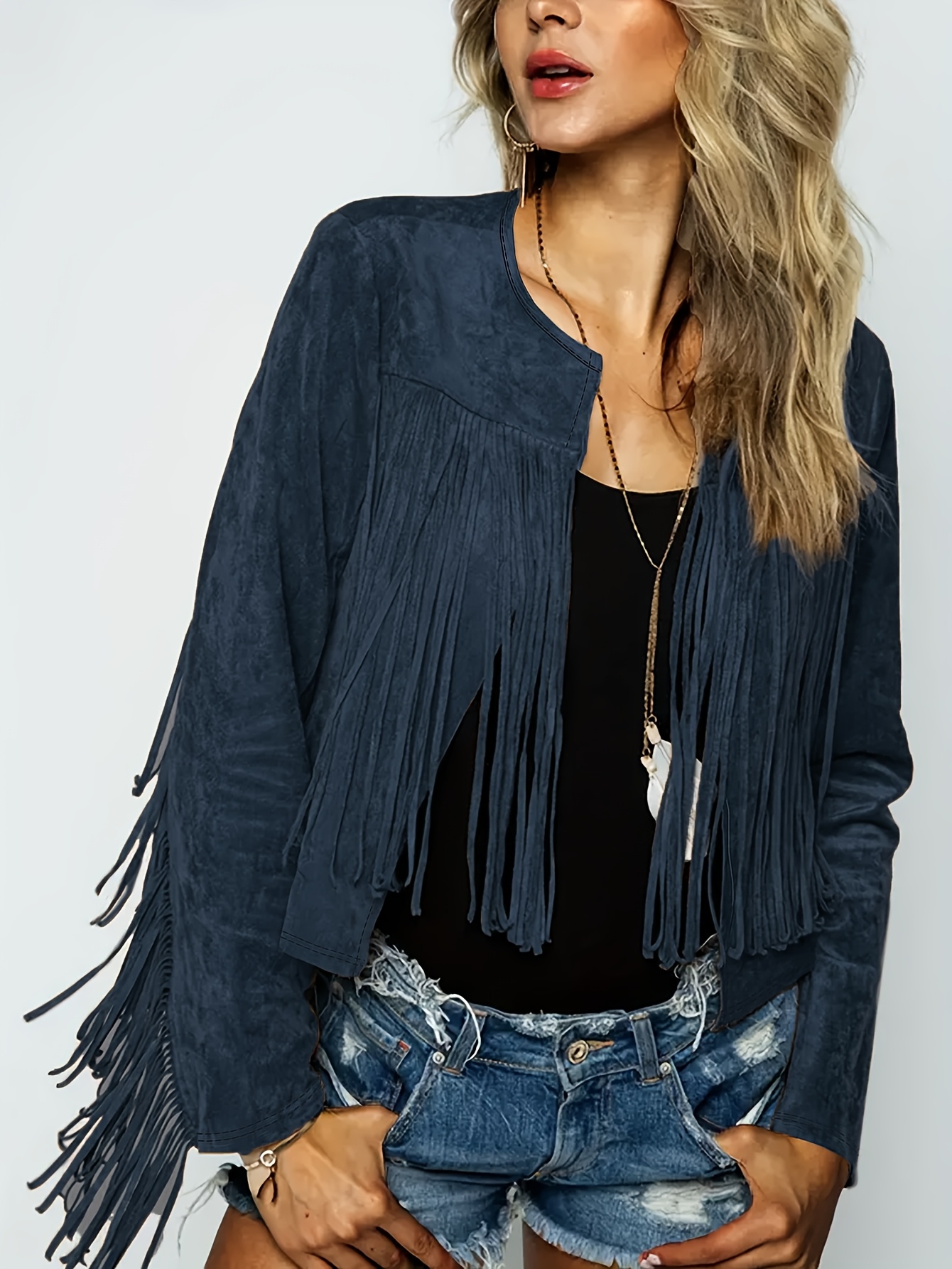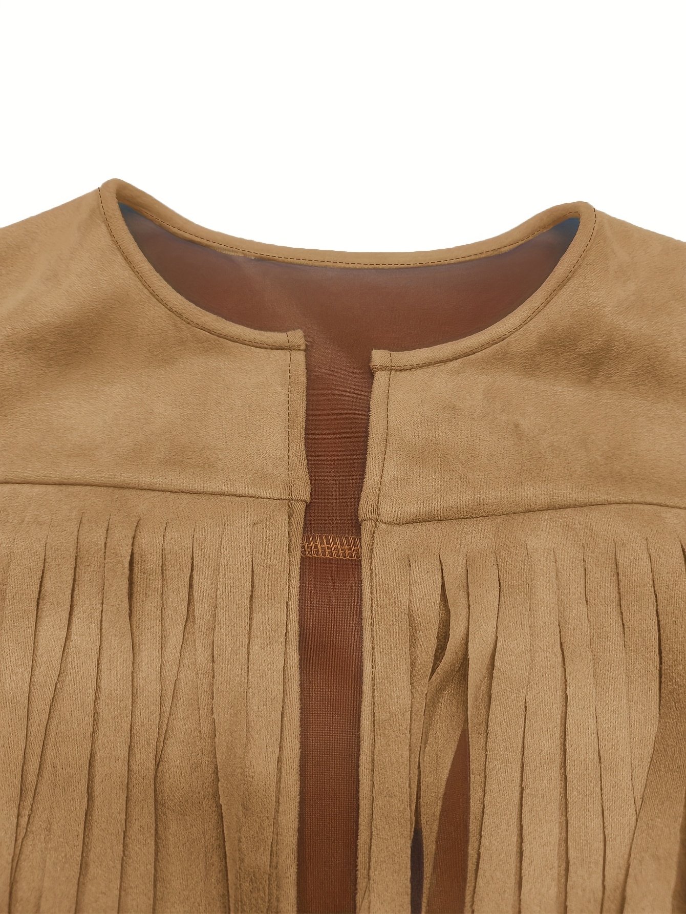 Veste manche longue bohème en faux daim à frange.