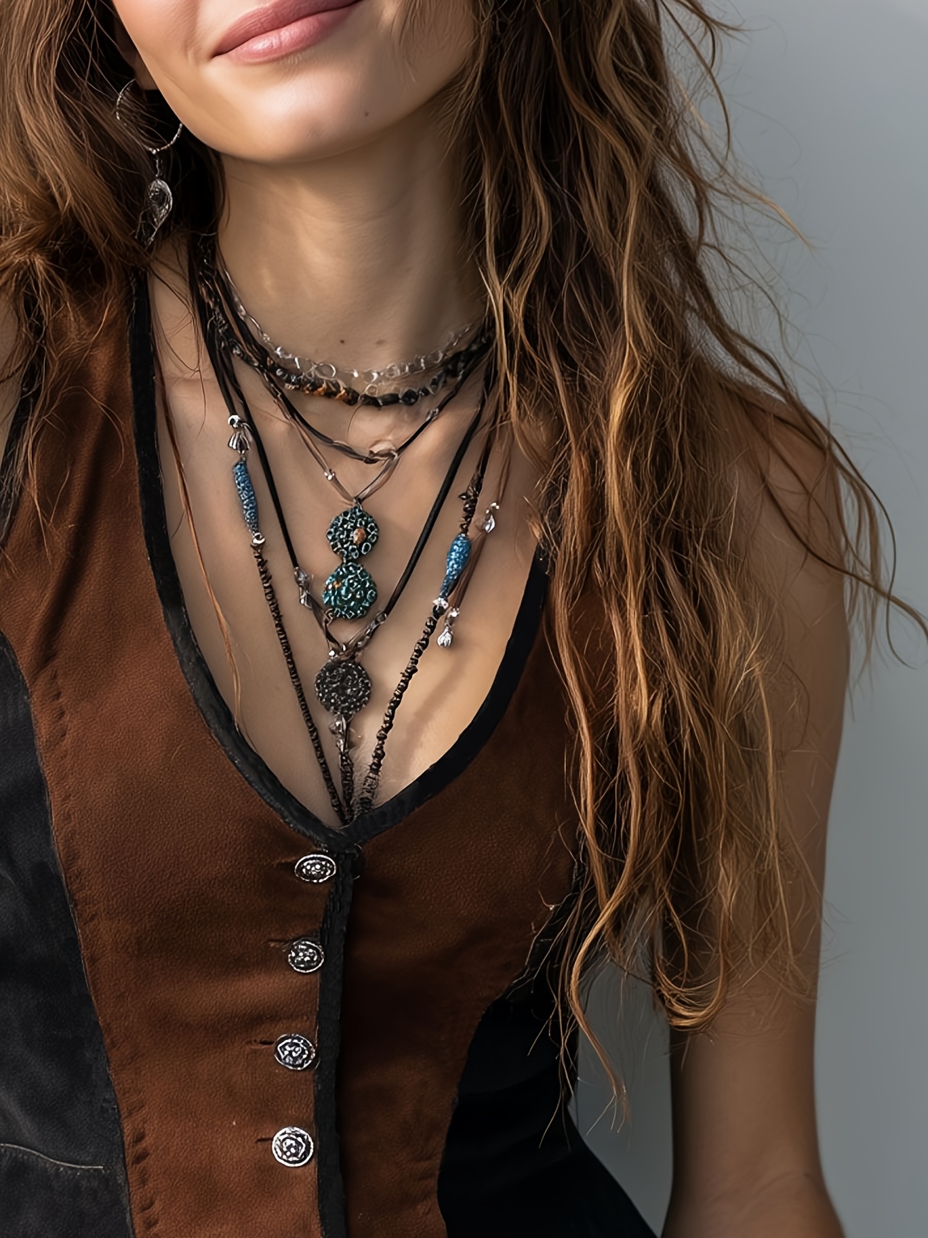 Women'S Vintage V-Neck Vest - Retro Layering Top with Button Front Closure, Brow
